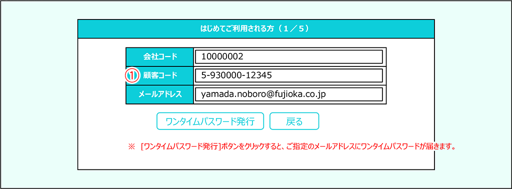 ①に請求書のお客様コードを入力してください。