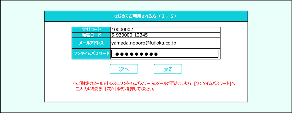 ご入力いただいたメールアドレスにワンタイムパスワードが届きます。