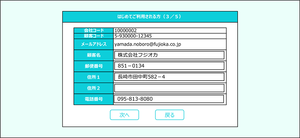 次に顧客名、郵便番号、住所、電話番号を入力してください。