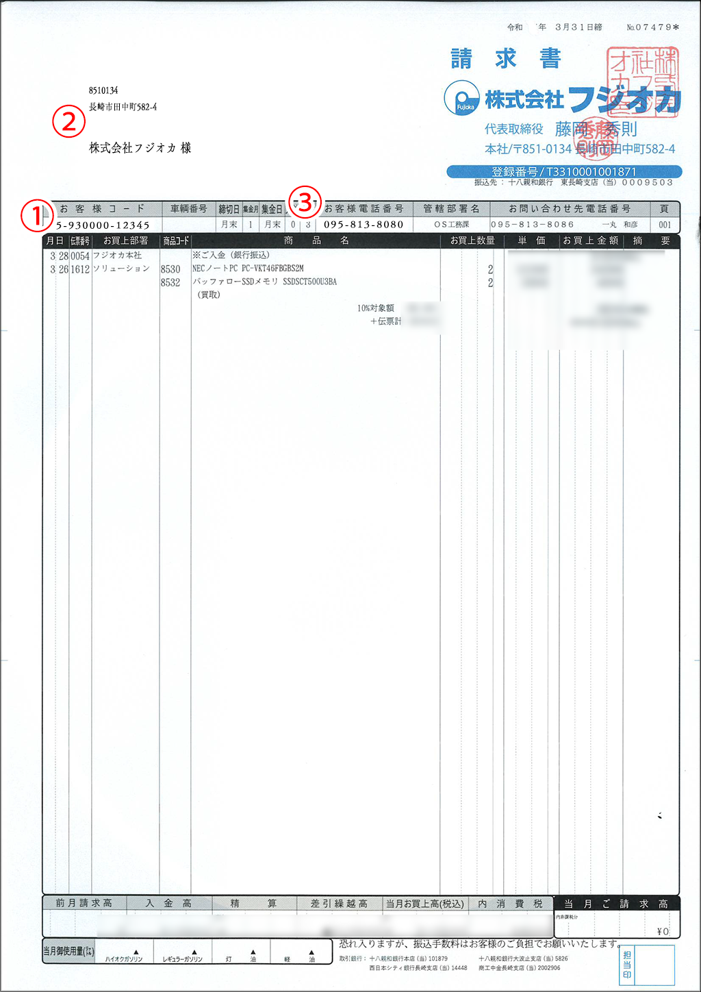 弊社から発行しております請求書をお手元にご準備ください。